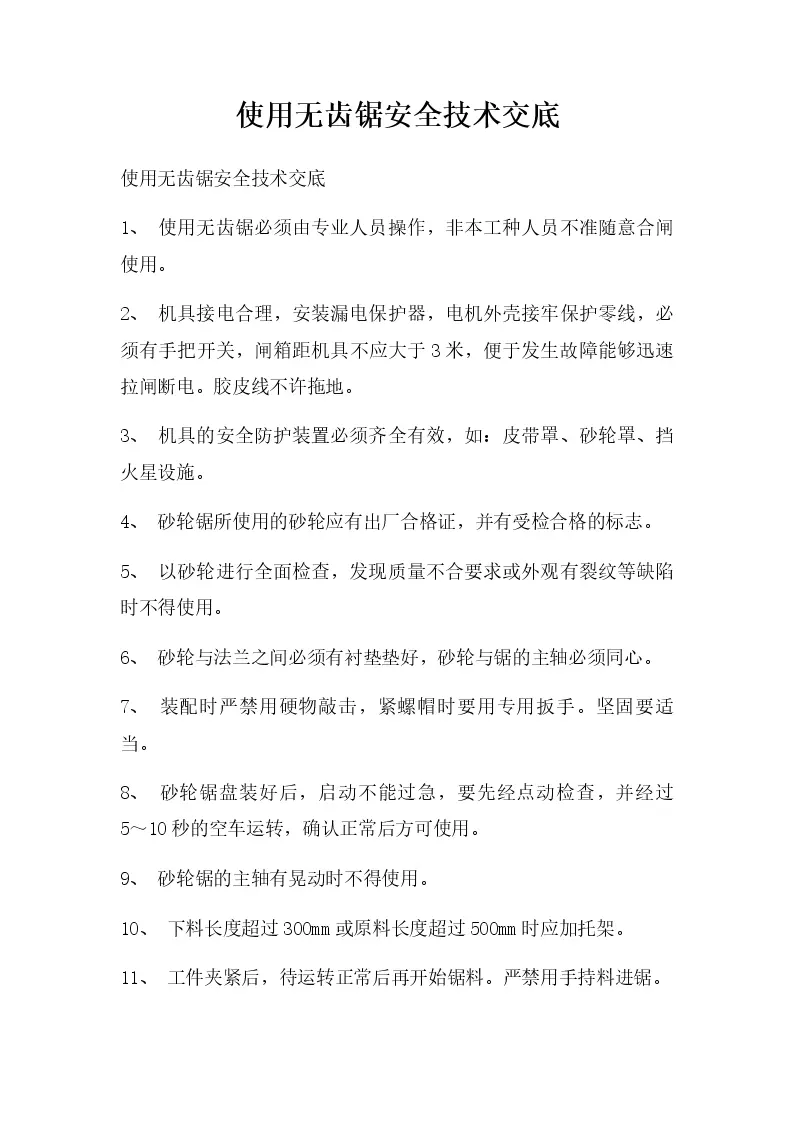 使用无齿锯安全技术交底