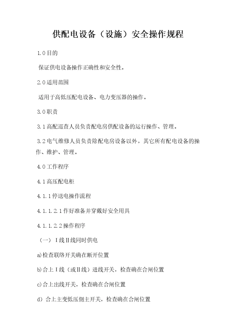供配电设备(设施)安全操作规程