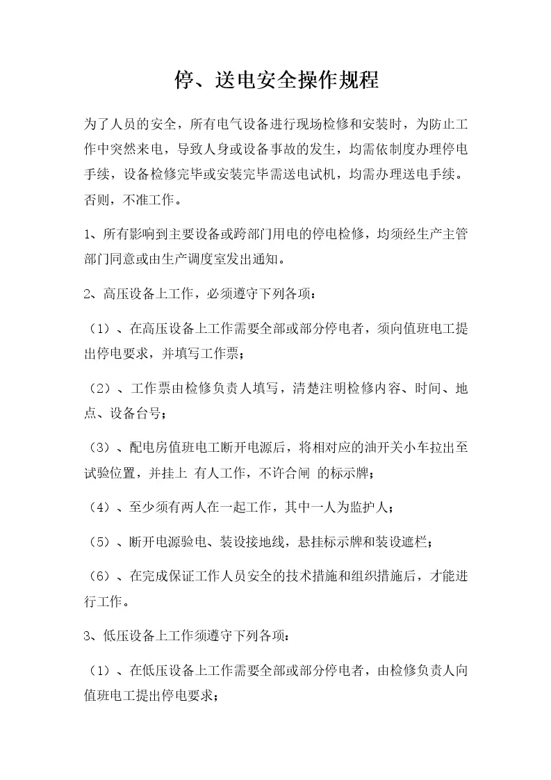 停、送电安全操作规程