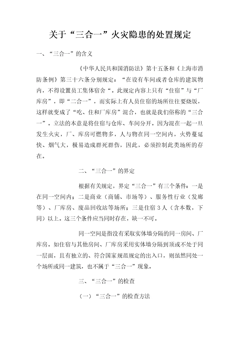 “三合一”火灾隐患的处置规定