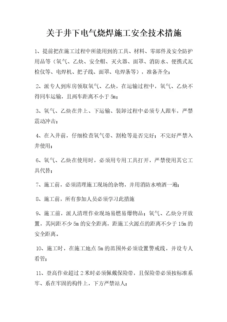 井下电气烧焊施工安...