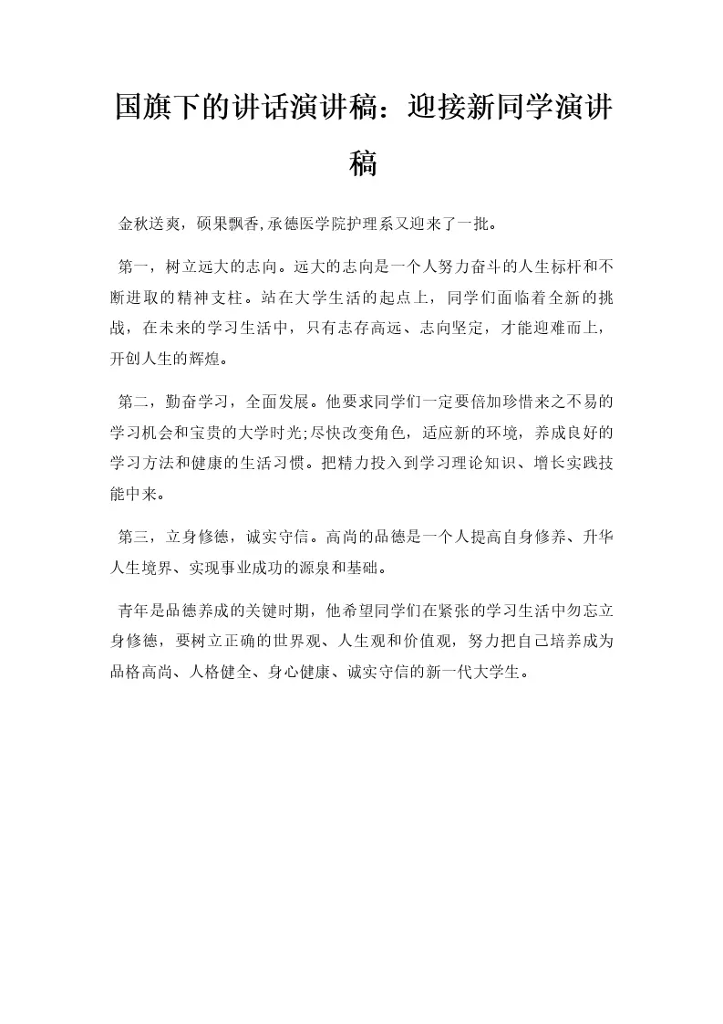 国旗下的讲话演讲稿:迎接新同学演讲稿