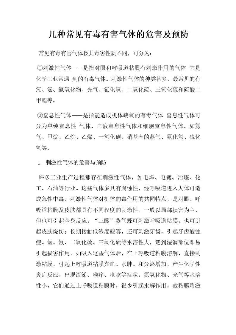 几种常见有毒有害气体的危害及预防