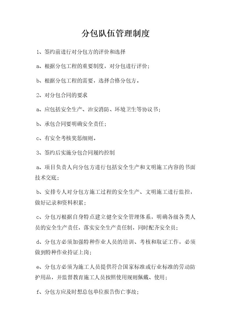 分包队伍管理制度