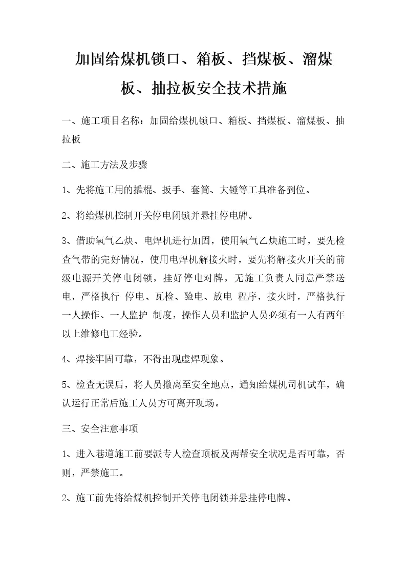 加固给煤机锁口、箱板、挡煤板、溜煤板、抽拉板安全技术措施