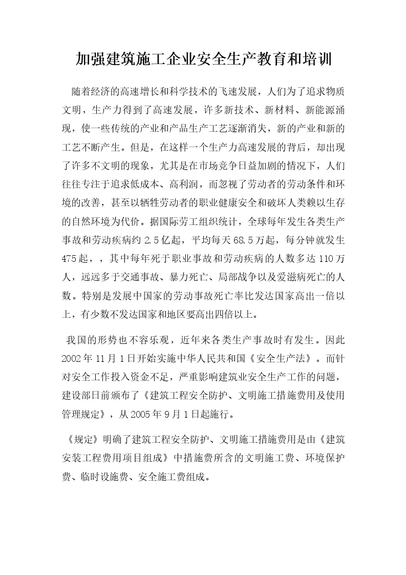 加强建筑施工企业安全生产教育和培训