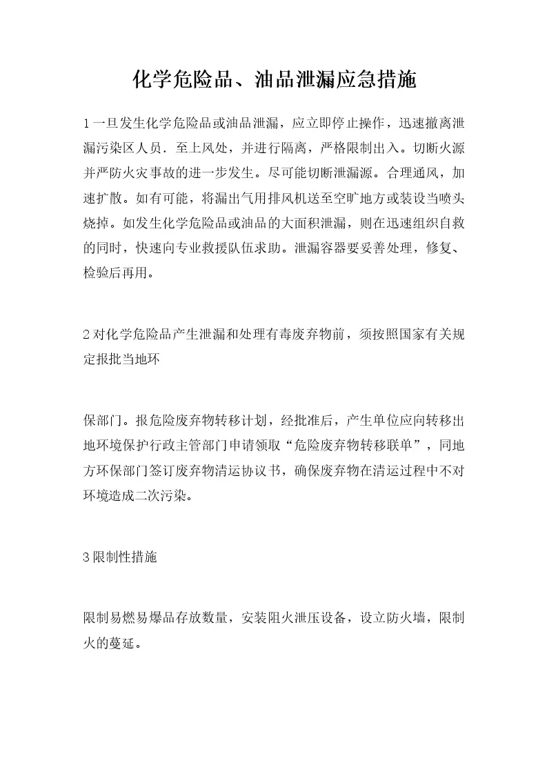 化学危险品、油品泄漏应急措施