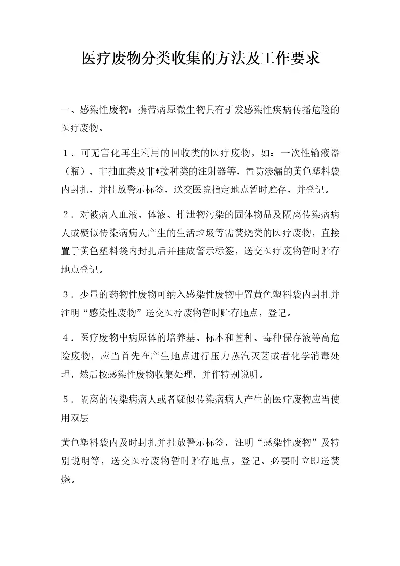 医疗废物分类收集的方法及工作要求