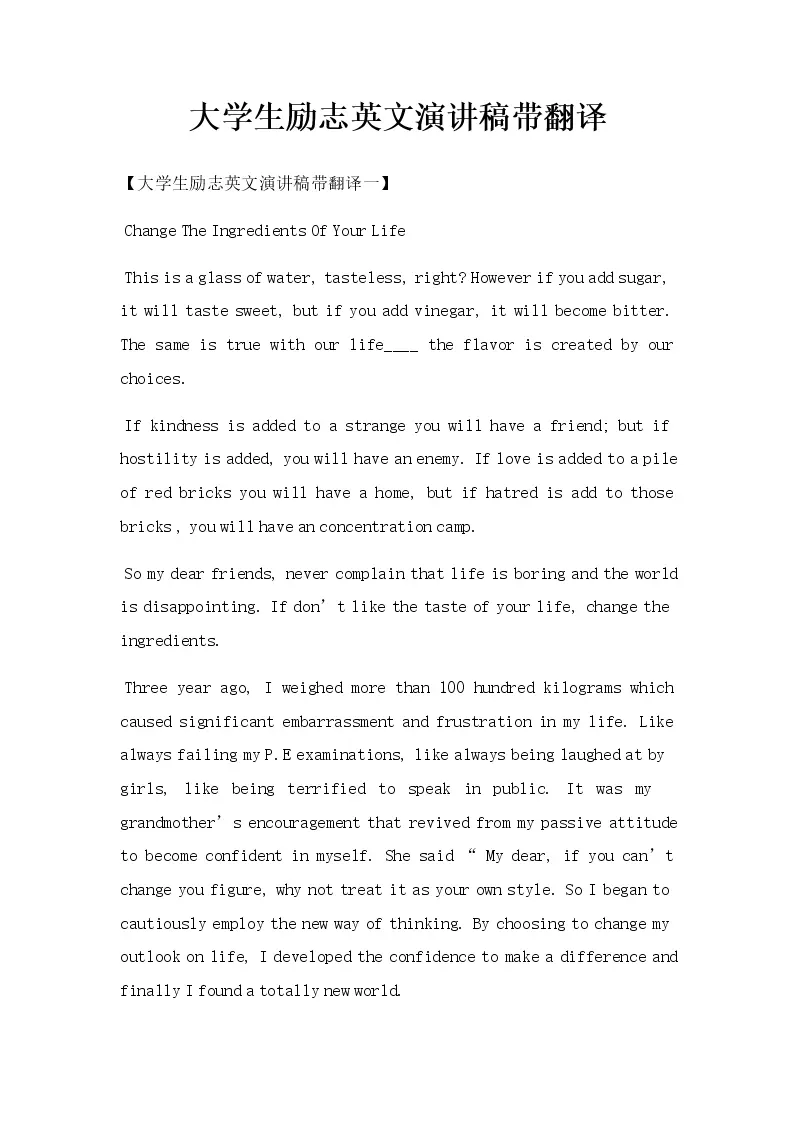 大学生励志英文演讲稿带翻译