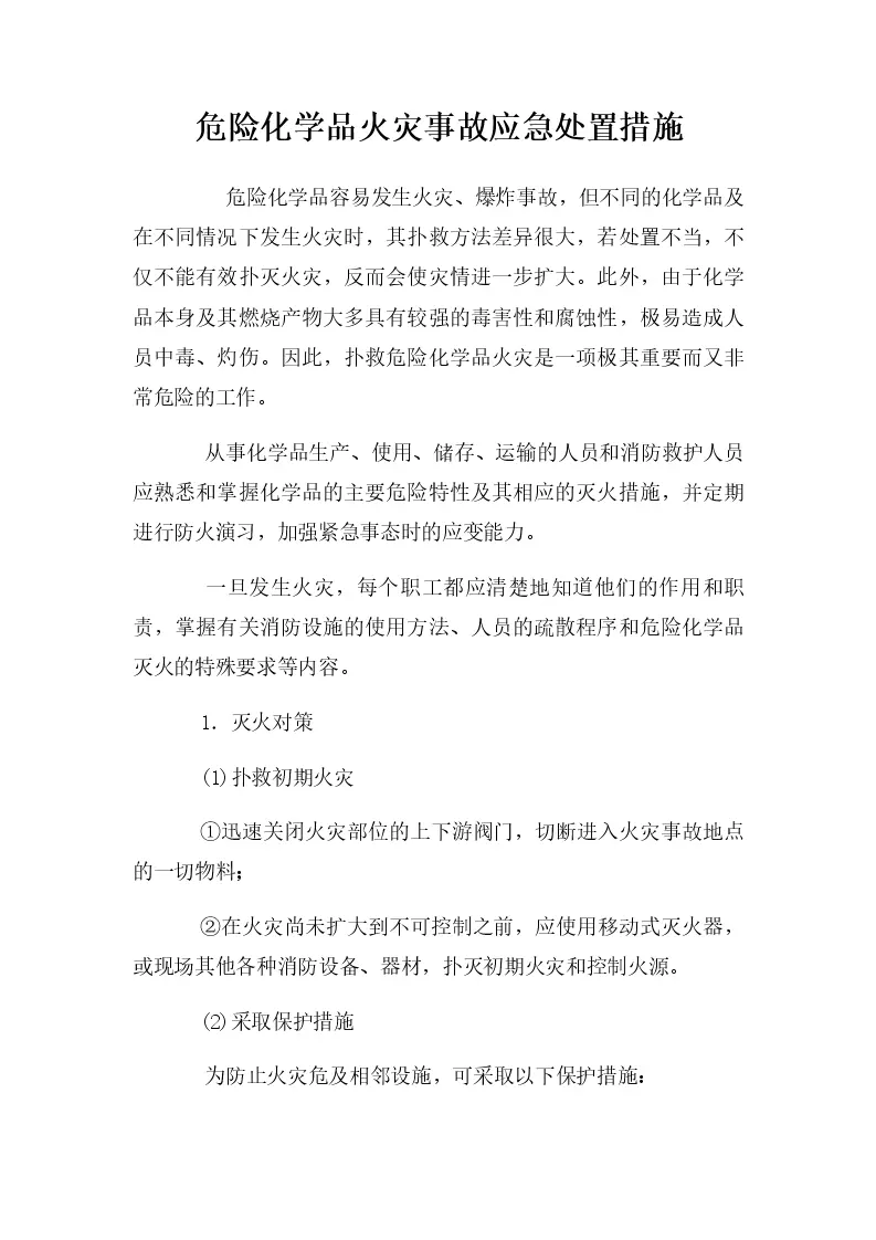 危险化学品火灾事故应急处置措施