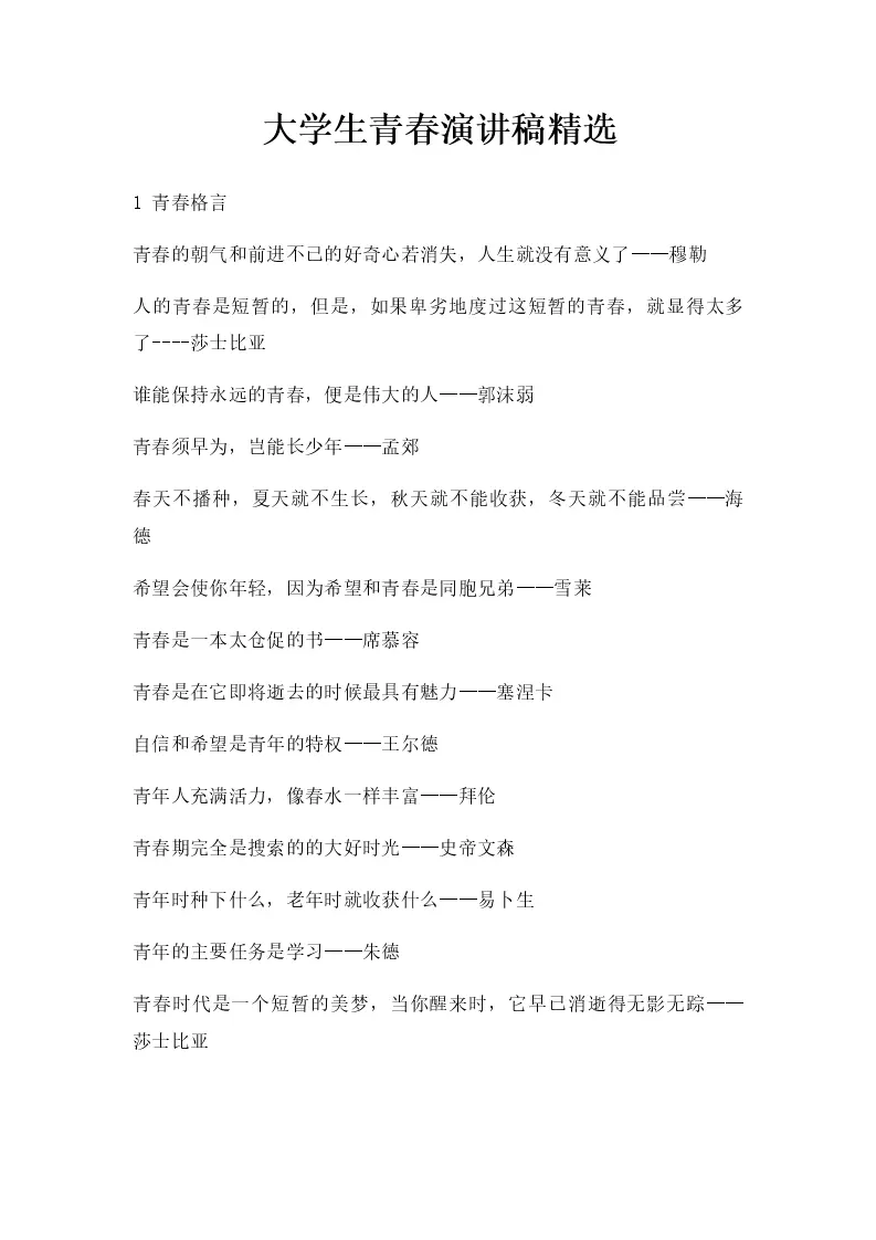 大学生青春演讲稿精选