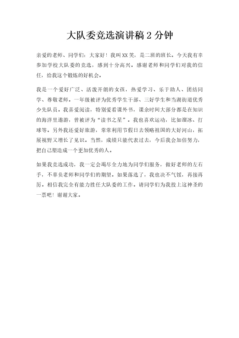 大队委竞选演讲稿2分钟
