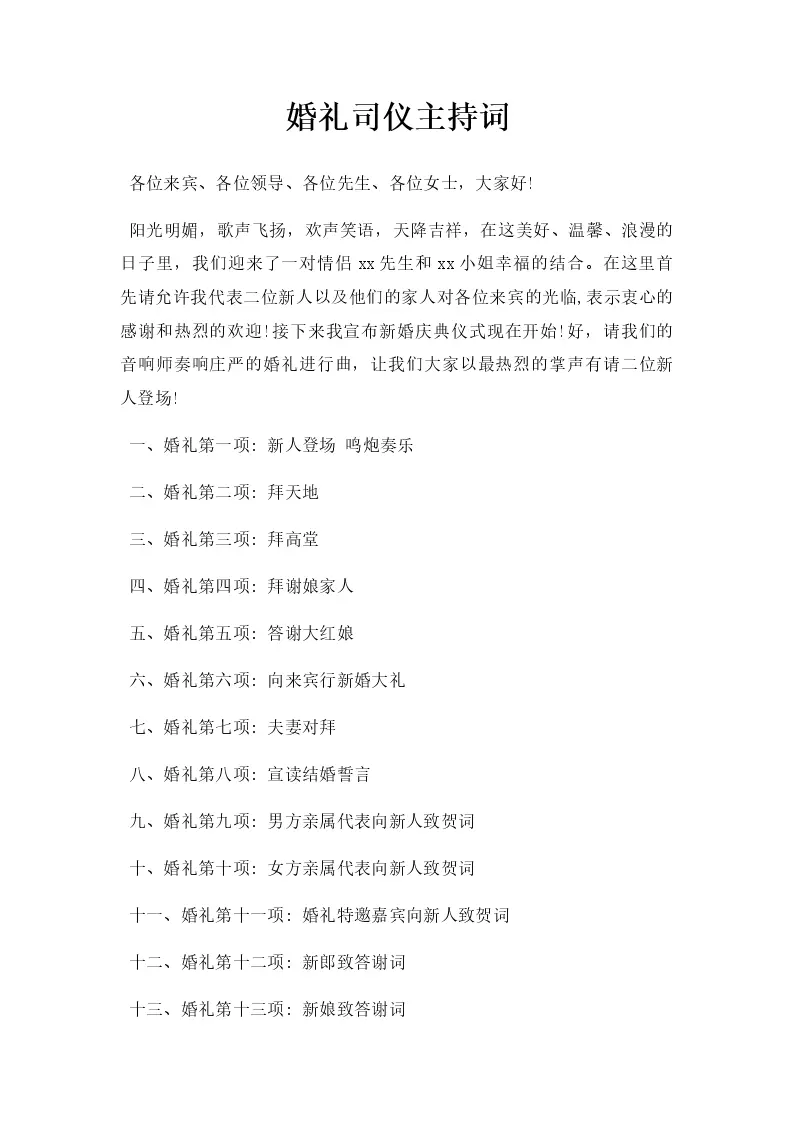 婚礼司仪主持词