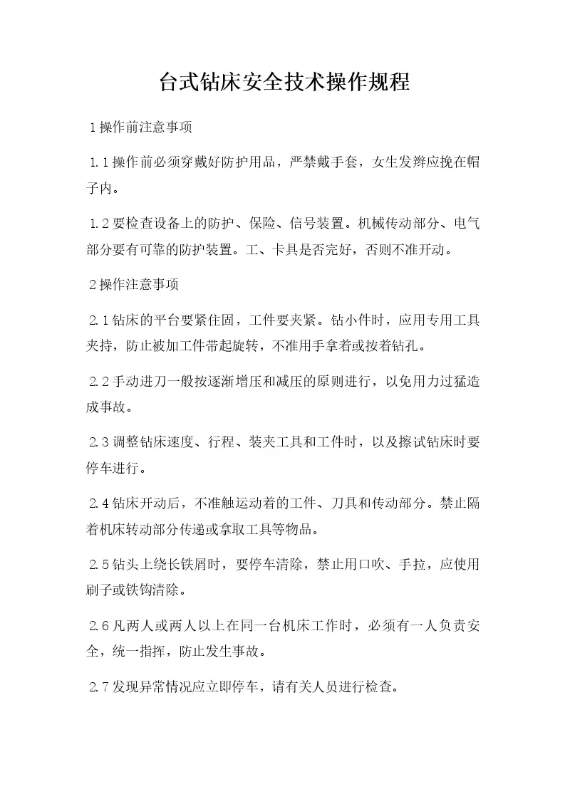 台式钻床安全技术操作规程