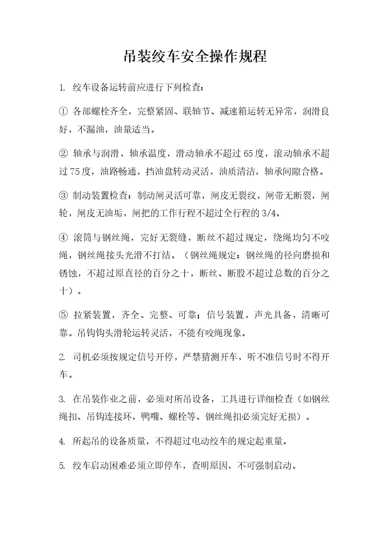 吊装绞车安全操作规程