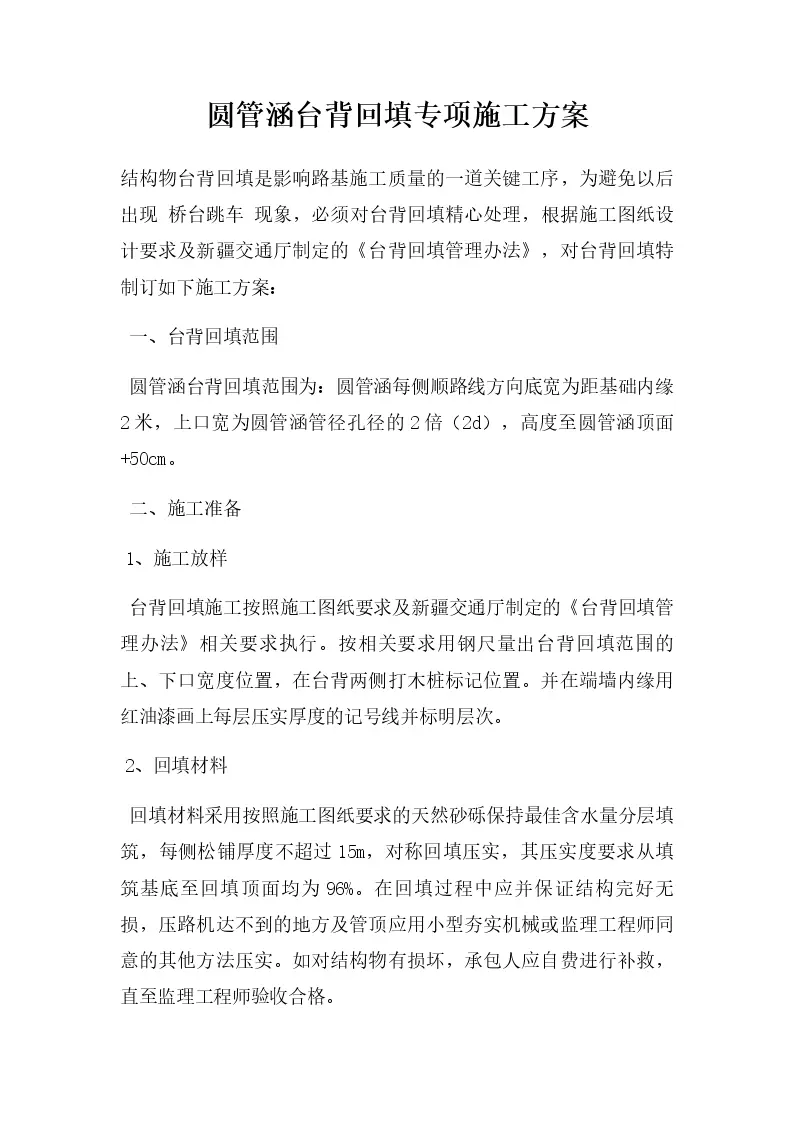 圆管涵台背回填专项施工方案