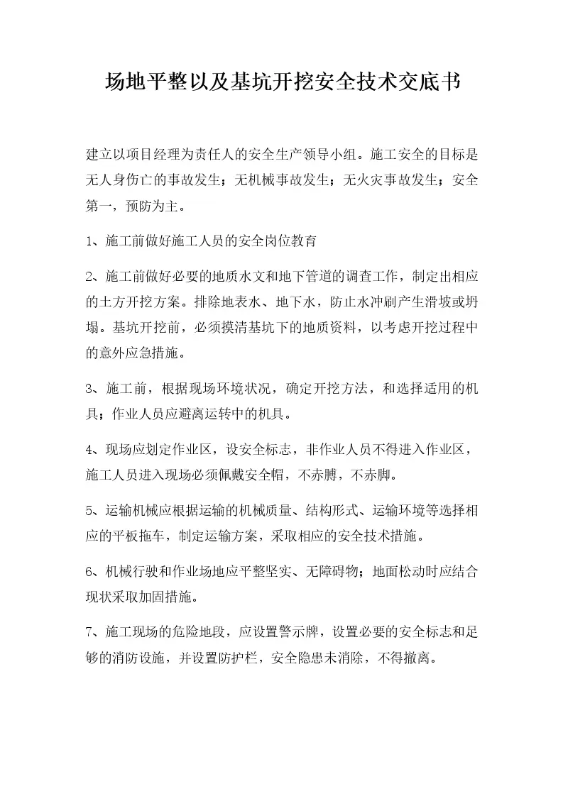场地平整以及基坑开挖安全技术交底书