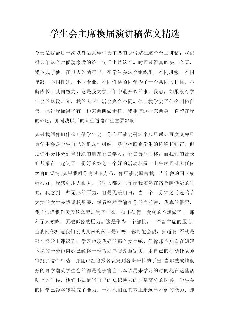 学生会主席换届演讲稿范文精选