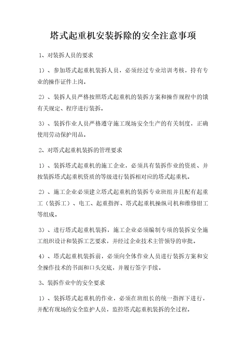 塔式起重机安装拆除的安全注意事项