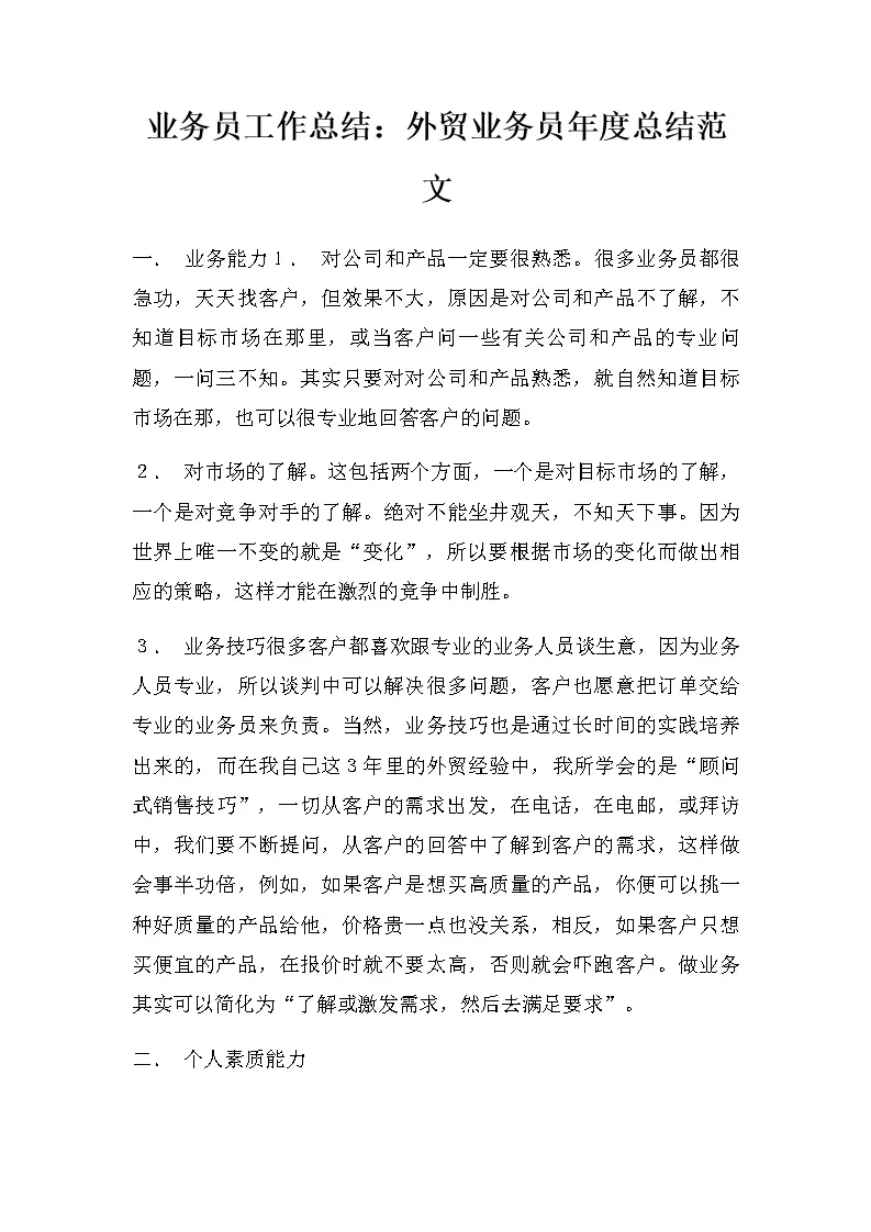 业务员工作总结:外贸业务员年度总结范文