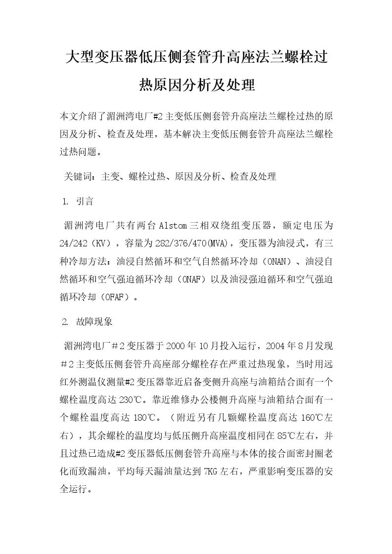 大型变压器低压侧套管升高座法兰螺栓过热原因分析及处理