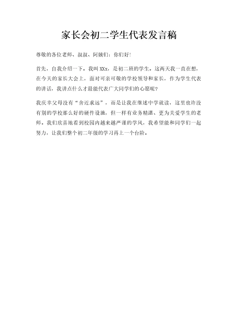 家长会初二学生代表...