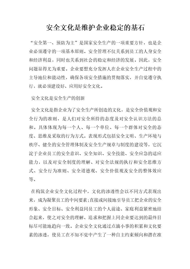 安全文化是维护企业稳定的基石