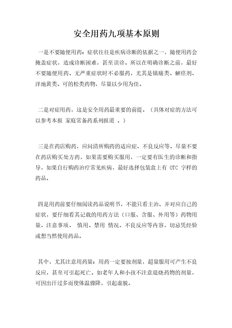 安全用药九项基本原则
