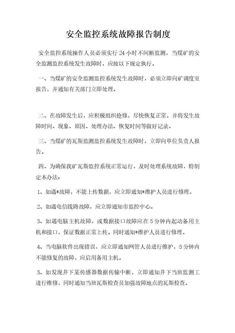 安全监控系统故障报告制度