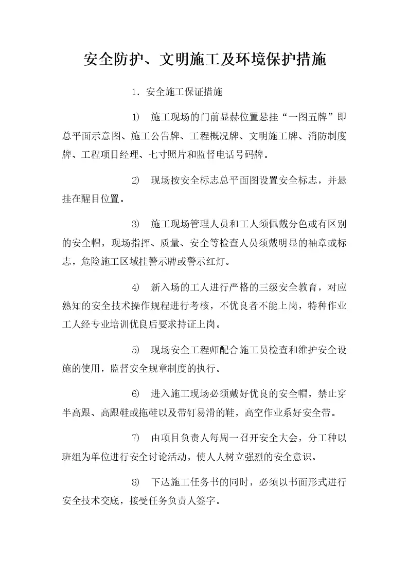 安全防护、文明施工及环境保护措施