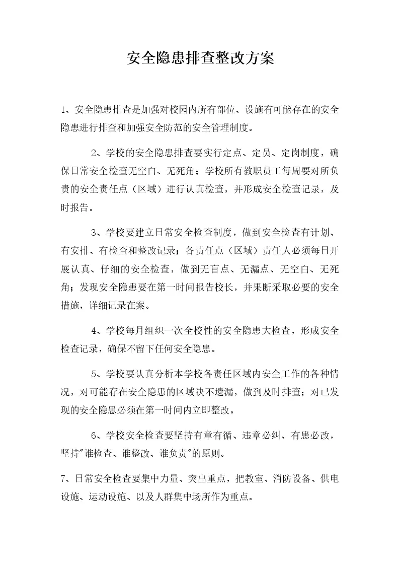 安全隐患排查整改方案