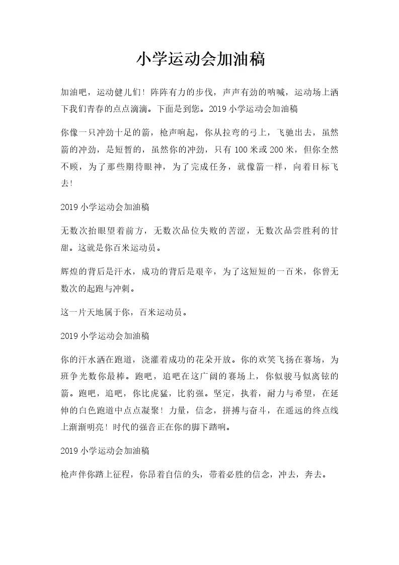 小学运动会加油稿