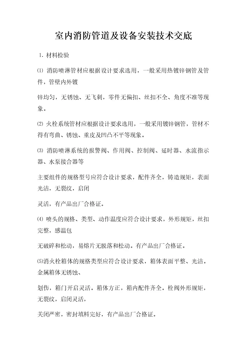 室内消防管道及设备安装技术交底