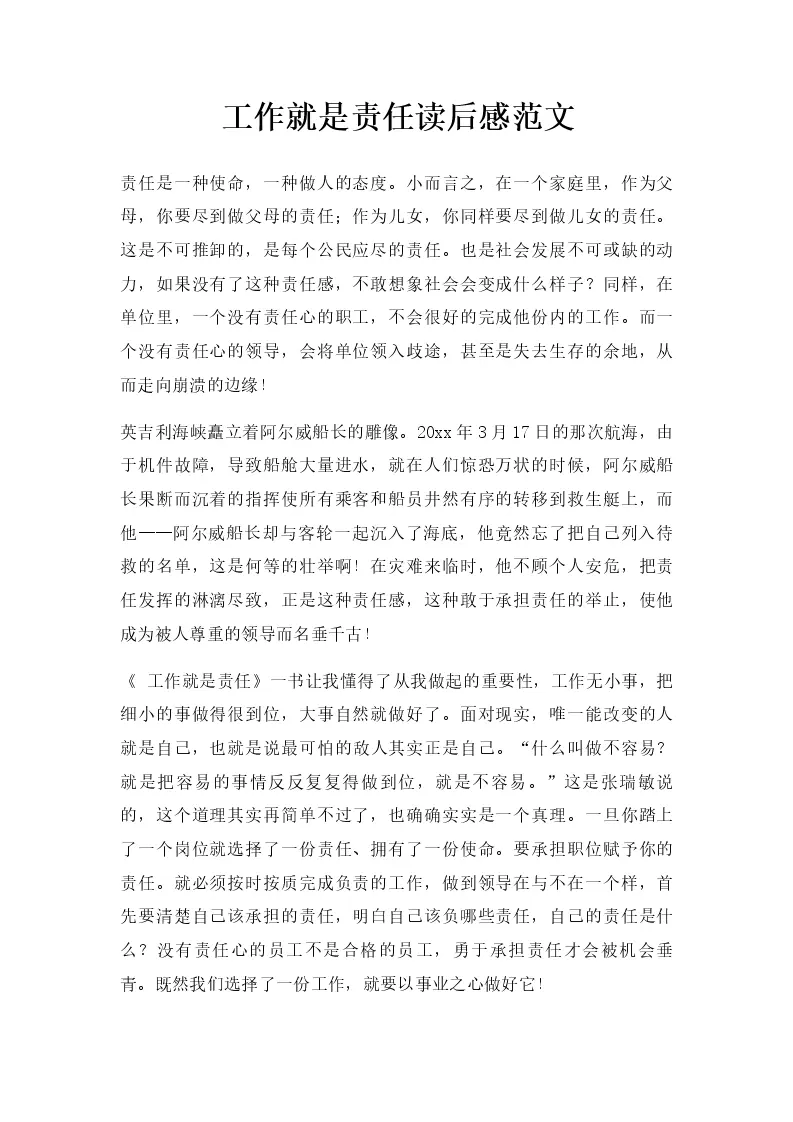 工作就是责任读后感范文