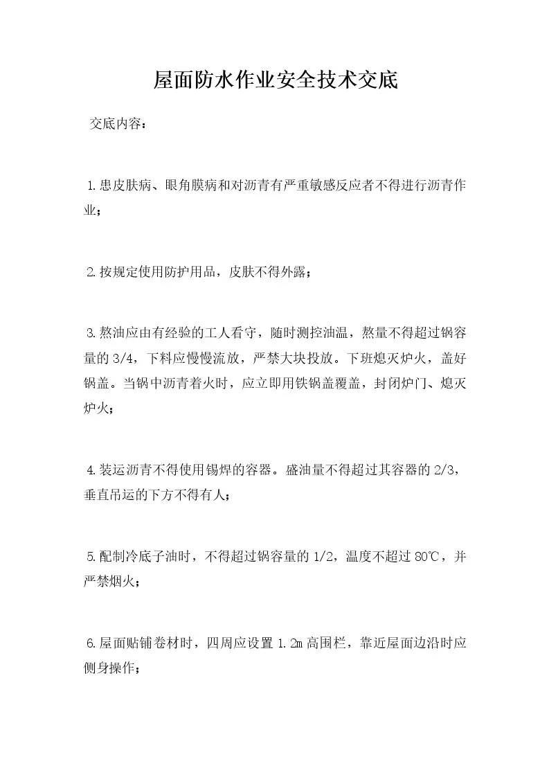 屋面防水作业安全技术交底