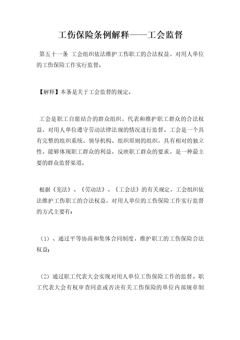 工伤保险条例解释——工会监督