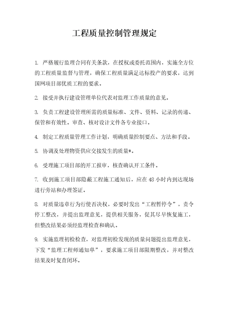 工程质量控制管理规定