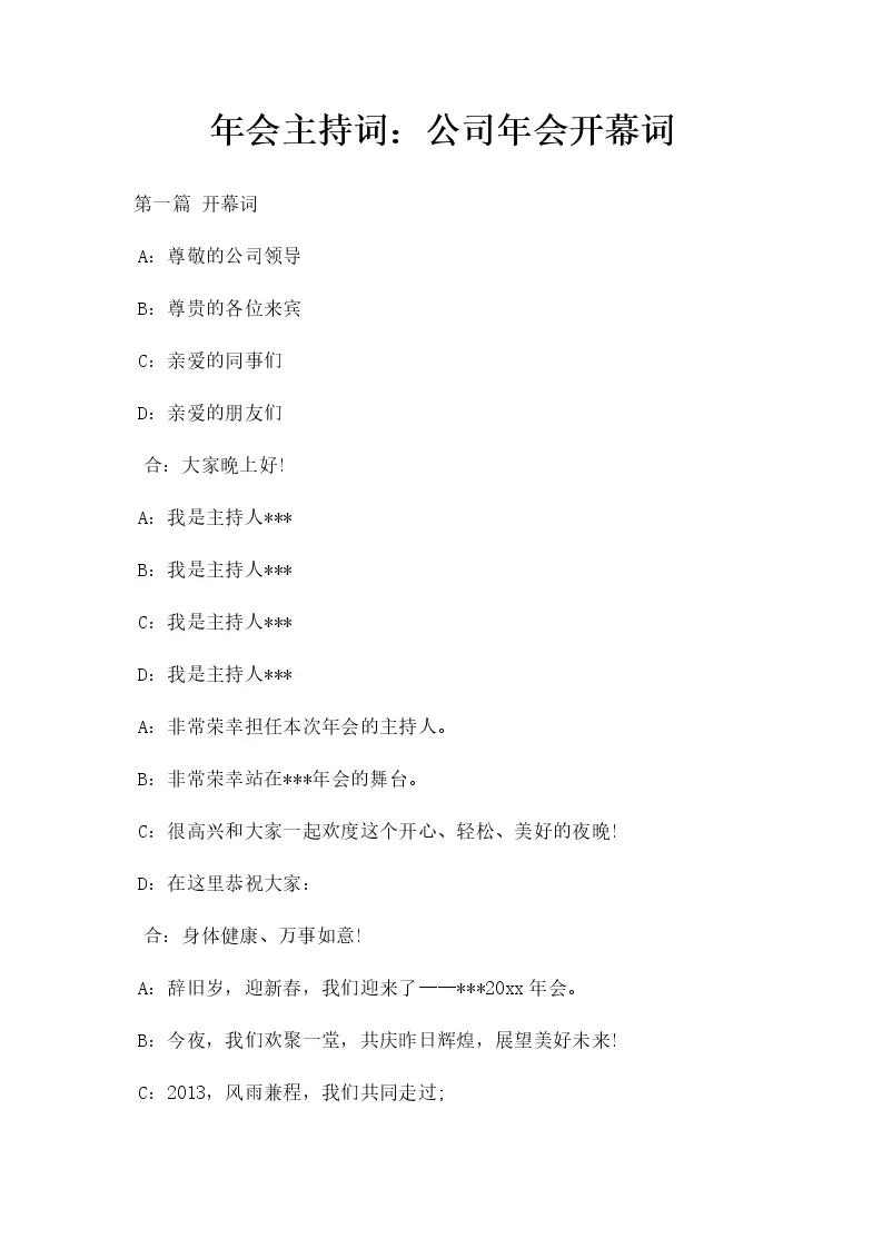 年会主持词:公司年...