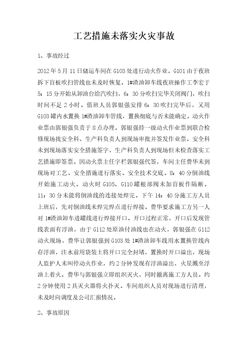 工艺措施未落实火灾...