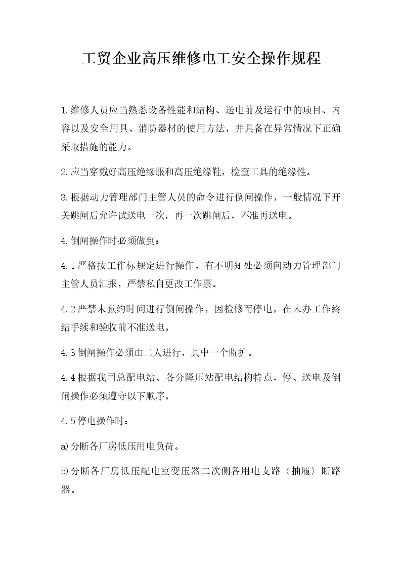工贸企业高压维修电工安全操作规程