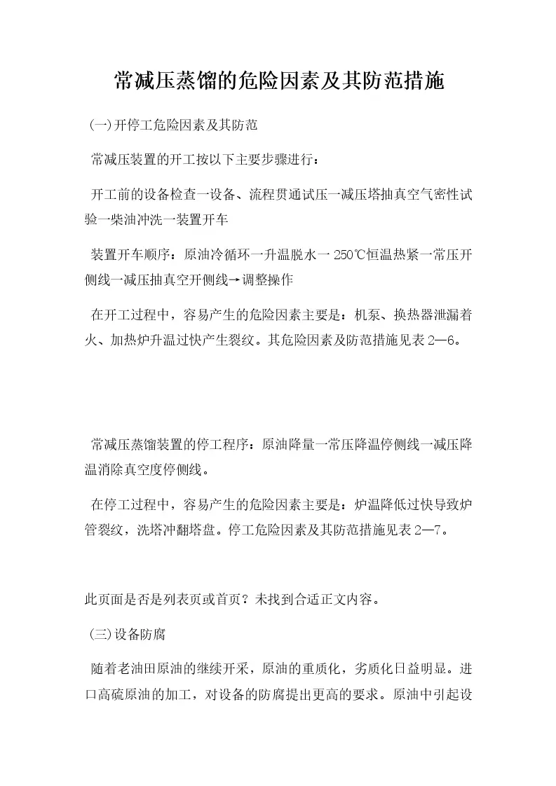 常减压蒸馏的危险因素及其防范措施
