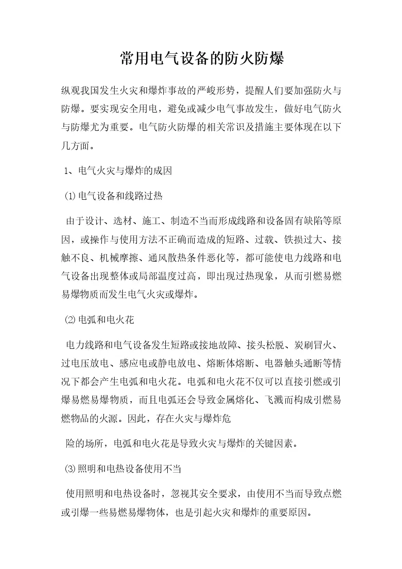 常用电气设备的防火防爆
