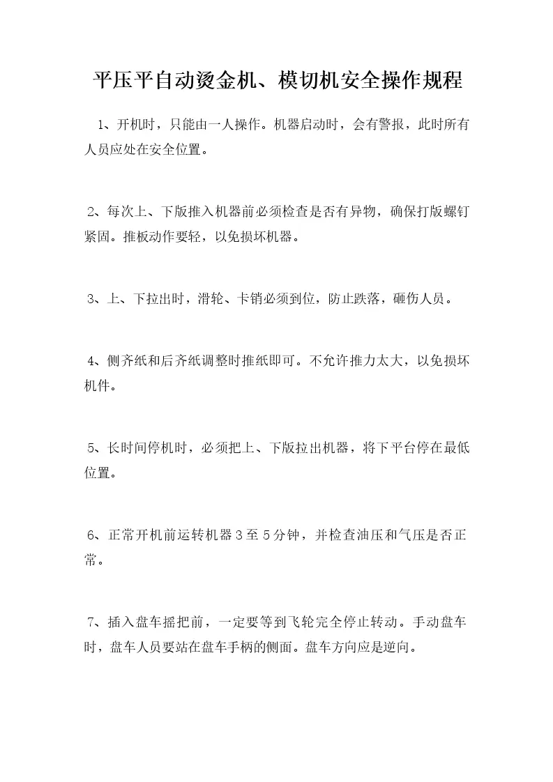 平压平自动烫金机、模切机安全操作规程