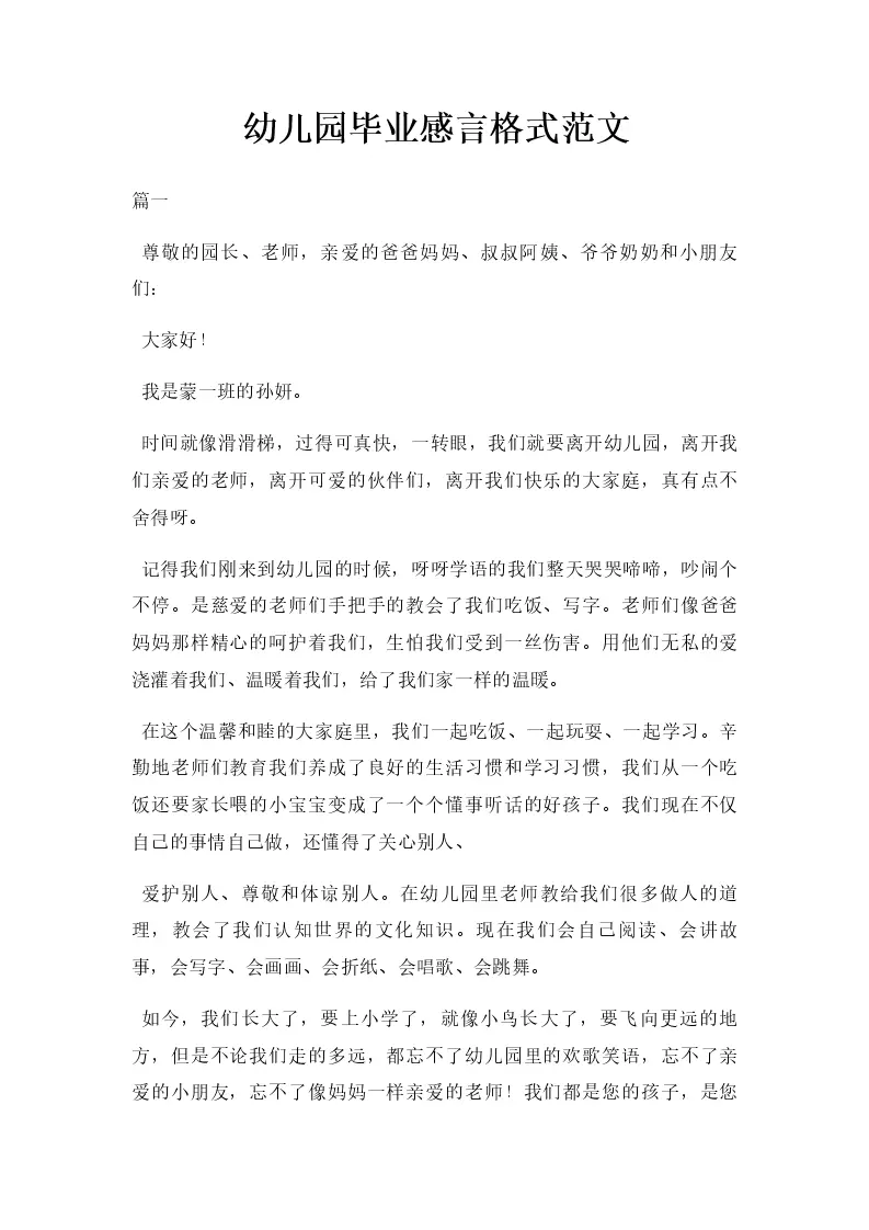 幼儿园毕业感言格式...