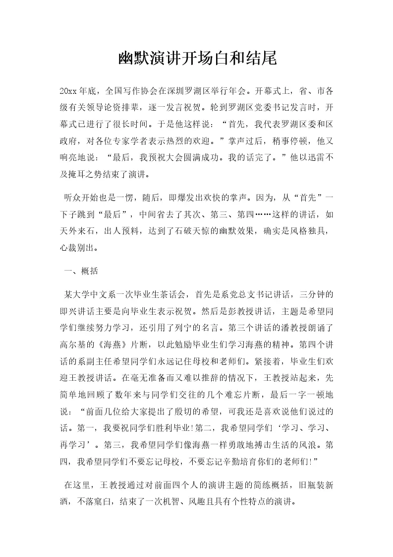 幽默演讲开场白和结尾