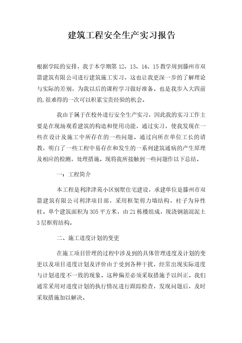 建筑工程安全生产实习报告