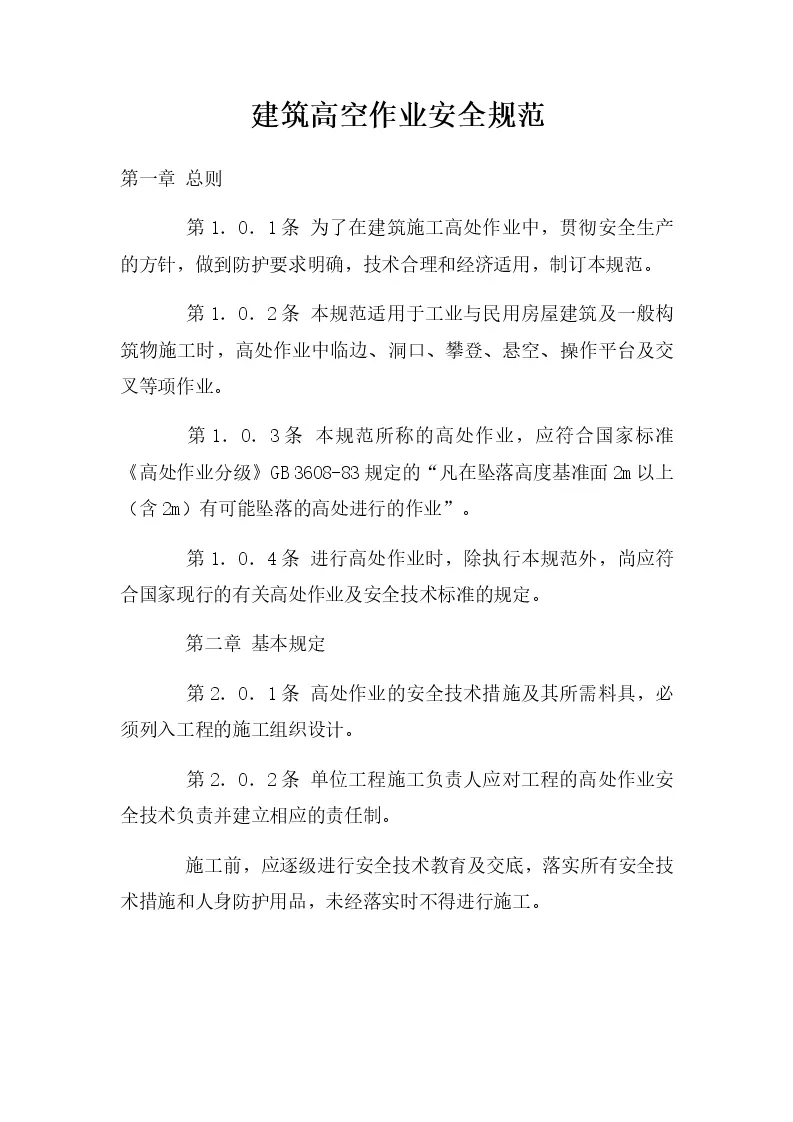 建筑高空作业安全规范