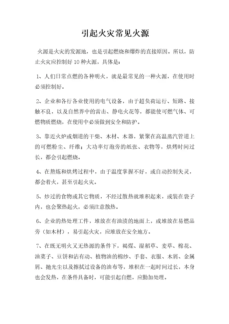 引起火灾常见火源