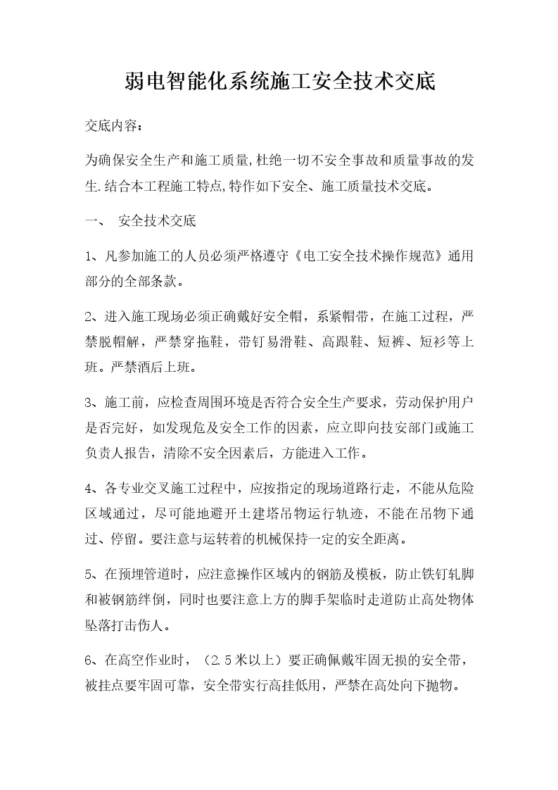 弱电智能化系统施工安全技术交底