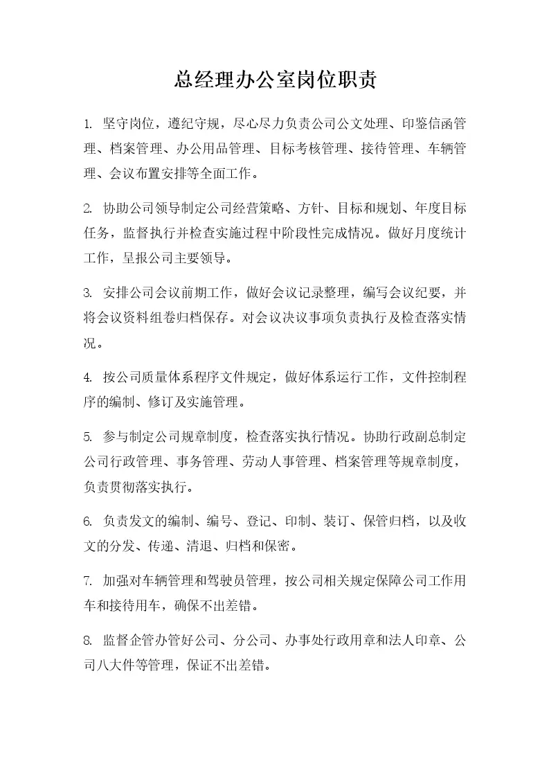 总经理办公室岗位职责